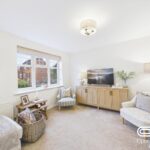 On the first floor, the living room offers a comfortable and inviting space with dual windows that flood the room with daylight. Its generous proportions make it an ideal spot for relaxing or entertaining, with a warm and neutral palette that complements any style.