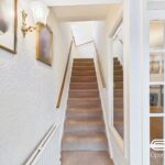 The hallway provides a practical entrance to the home, with stairs leading up to the first floor and access to the living room. It features a neutral decor and a fitted mirror that enhances the sense of space.