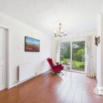 The dining room is conveniently accessed from the kitchen and features double doors that open out to the garden. It benefits from a wood-effect floor and a wide window, making it a bright and versatile space for meals and gatherings.