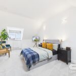 The larger first floor bedroom is a bright and airy space with two windows filling the room with natural light. It offers ample space for a double bed and additional furniture, providing a peaceful retreat.