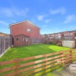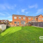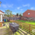 The rear garden offers a fantastic outdoor space, ideal for families and entertaining. A spacious patio area provides the perfect setting for outdoor dining, while the lawned section offers plenty of room for children to play or for gardening enthusiasts to enjoy. The garden is enclosed with fencing for privacy and includes a handy wooden shed for storage. A rear access gate adds convenience, and the area is well-maintained, making it a lovely extension of the home.
