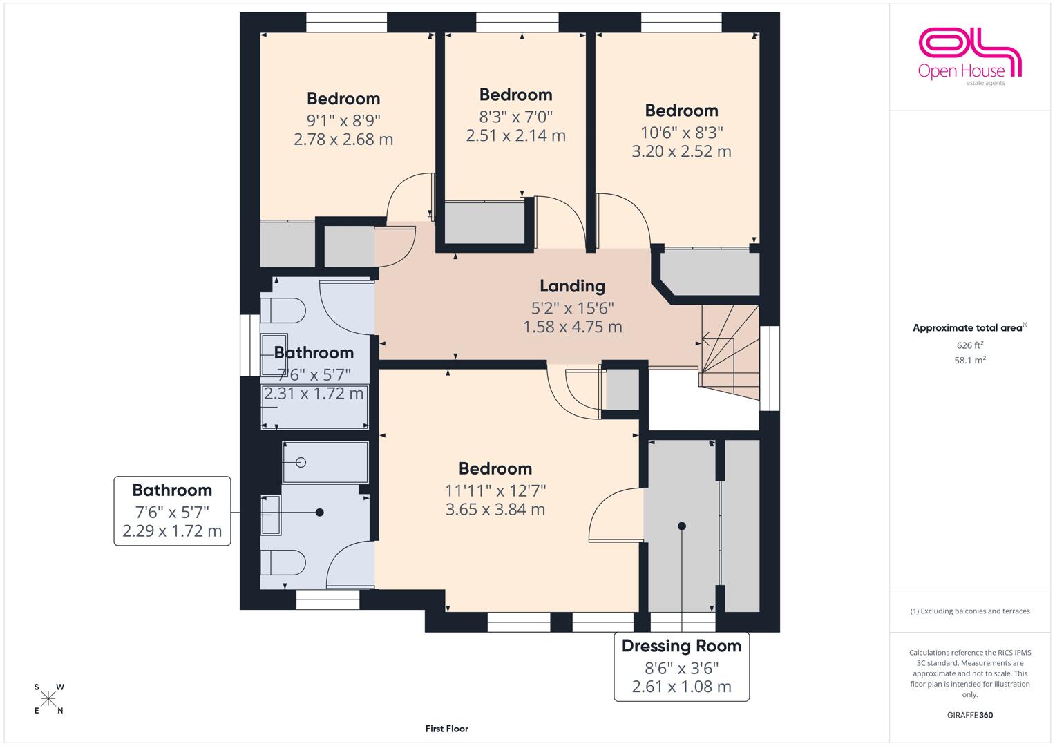 - Four generously sized bedrooms, including a large master with dressing room & fitted wardrobes and en-suite