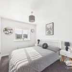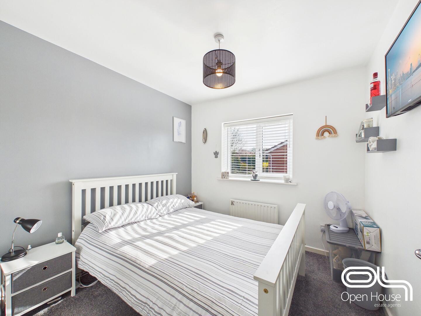Bedroom four is a well-proportioned and stylishly presented room, ideal for use as a bedroom or guest space. Featuring a plush carpet, a modern neutral colour scheme, and a soft feature wall, it offers a comfortable and inviting atmosphere. The large window allows for plenty of natural light, creating a bright and airy environment.