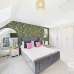 A beautifully presented and versatile bedroom, perfect for a child’s room, guest space, or home office. The feature wallpaper adds character and charm, complementing the neutral tones throughout. A large window floods the room with natural light, enhancing the airy and inviting feel. With ample space for a bed and storage solutions, this bedroom is both stylish and practical, making it a comfortable retreat for relaxation.