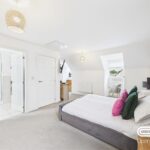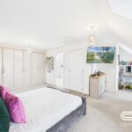 This stunning master suite, occupying the entire top floor, offers a private retreat with an abundance of space. Featuring a striking feature wall and large windows on both sides, the room is flooded with natural light, creating a bright and inviting atmosphere. Ample built-in wardrobes provide generous storage, while the additional alcove makes an ideal dressing or study area. The en-suite bathroom adds a touch of luxury, completing this impressive suite designed for ultimate comfort.