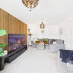 This beautifully presented lounge is the perfect space for relaxation and entertaining. A stunning feature wall with wood panelling adds warmth and character, while the large bay window allows natural light to flood the room, creating a bright and inviting atmosphere. The generous layout easily accommodates multiple seating arrangements, making it an ideal spot for family gatherings or cosy nights in. Complemented by plush carpets and modern décor, this room is both stylish and comfortable.