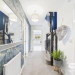 Step into this stylish and inviting entrance hall, setting the tone for the rest of this beautifully presented home. A perfect blend of contemporary design and practicality, the space features a striking feature wall, plush carpeting, and a well-placed mirror that enhances the sense of light and space. The staircase, with its elegant black and white balustrade, adds a touch of sophistication.
