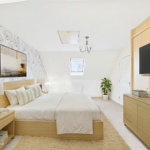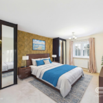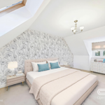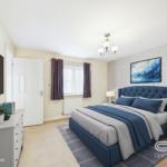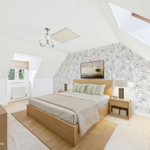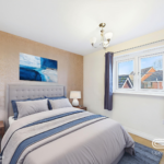 A comfortably sized double bedroom with a window offering views to the side of the property. The room is carpeted and enjoys a neutral palette, suitable for various décor styles. It also benefits from an en suite bathroom.