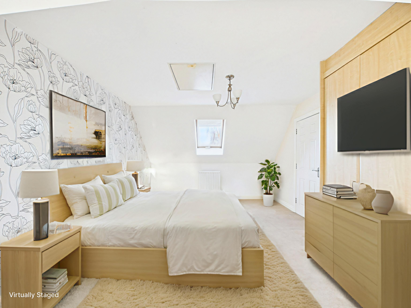 This second double bedroom on the second floor also enjoys a bright and spacious feel, with a window to the front. Neutral carpet and walls provide a blank canvas to personalise.