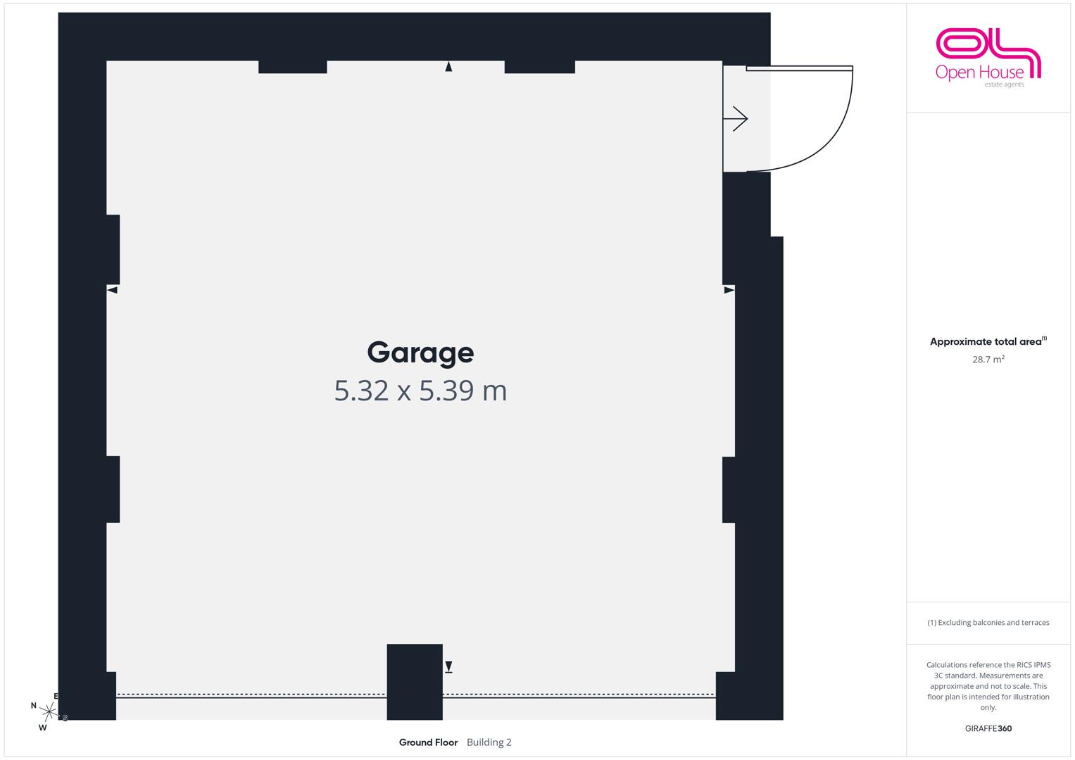 The garage is a detached, sizable space with room for vehicles and additional storage. It features an external door and up-and-over door, providing convenient access.