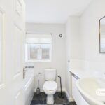 This ground floor WC is conveniently located off the hallway, with a simple suite and tiles to the floor for ease of maintenance.